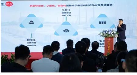 天翔集團副總經(jīng)理、滕生能源總經(jīng)理范坤發(fā)表打造儲能產(chǎn)業(yè)生態(tài)圈的主旨演講,全面介紹滕生能源商業(yè)模式、產(chǎn)品、產(chǎn)線(xiàn)和發(fā)展規劃。